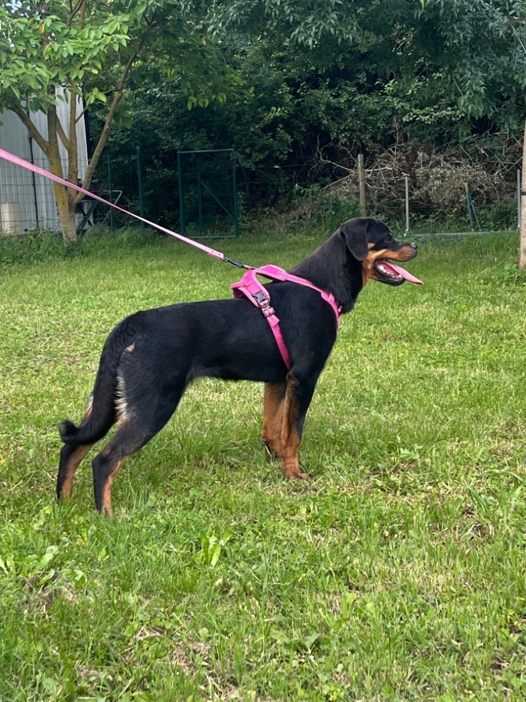 elle a un superbe caractère, chienne parfaitement équilibrée, adore les enfants et le contact humain. Ok congénères