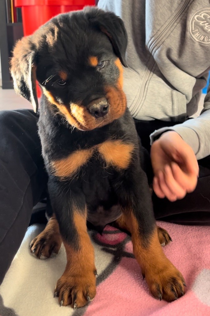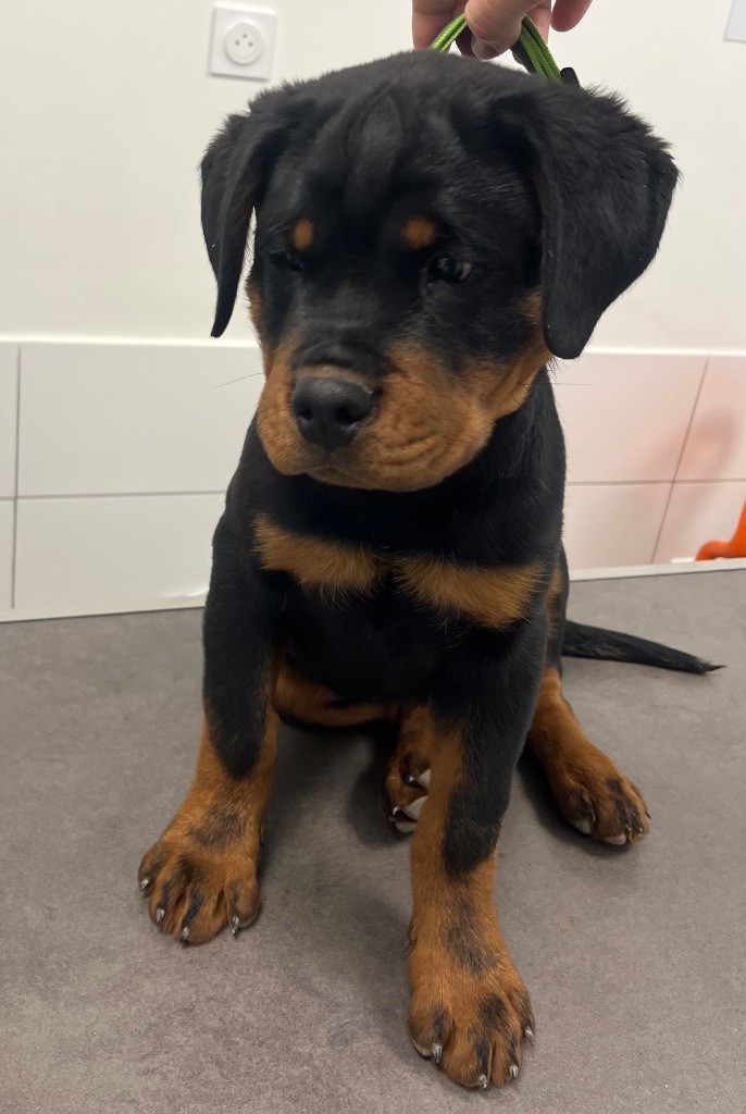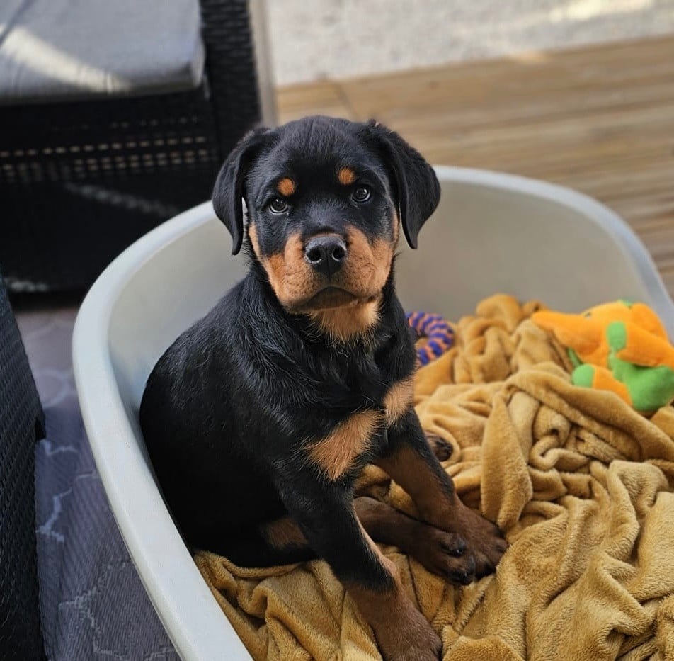 Un doux foyer pour mon bijou qui a un excellent caractère de rott. Vif est un chiot de 3 mois.